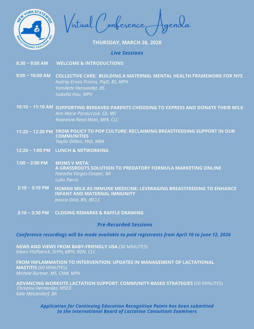If your organization needs to register for multiple staff members, please email us at conference@nysbreastfeeding.org.